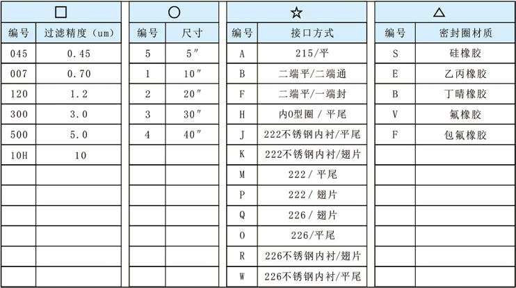 滤芯订购信息