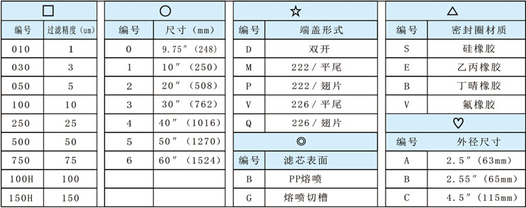 ◇滤芯长度:9.75”,10”,20”,30”,40”,50”,60”