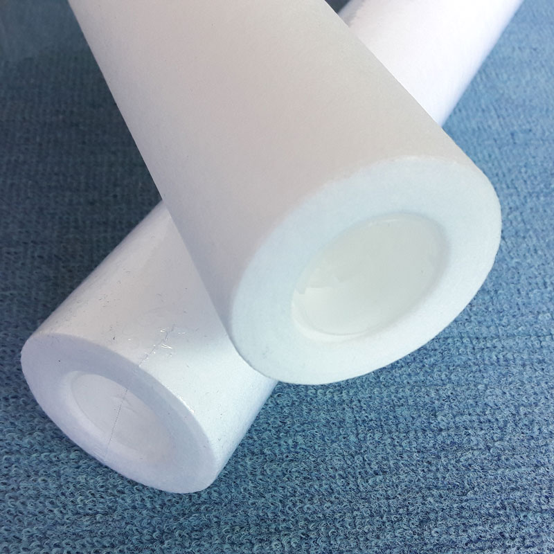PP熔喷滤芯由聚丙超细纤维热喷缠结而制成,无任何化学粘合剂,纤维随机器转动自由粘合形成三维微孔结构。外疏内密渐变孔径分布的结构,具有压差小,纳污力强,过滤效率高,使用寿命长的特点,能有效去除流体中的悬浮物、颗粒、铁锈等杂质。